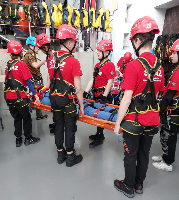 Kolejne spotkanie w ramach Młodziezowych Drużyn Pożarnicznych za nami. Ćwiczenia druhen i druchów odbyły się w Vulcan Training & Consultancy, ośrodkiem z którym ściśle współpracuje OSP Gryf. W ramach zajęć zrealizowano ćwiczenia z udzielania pomocy poszkodowanym oraz działania w zespole. Drużyna zapoznała się z podstawami użycia sprzętu wysokościowego. Omówione zostały zasady bezpieczeństwa, a następnie przeprowadzono serię ćwiczeń takich jak ubieranie i dopasowywanie uprzęży, zasady bezpiecznego poruszania się i asekuracji. Drużyna młodzieżowa miała okazję przećwiczyć zasady przygotowywania poszkodowanego do ewakuacji z trudnej przestrzeni przy użyciu m.in deski ortopedycznej.