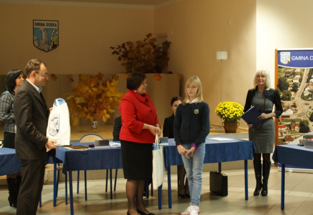 Laureatom konkursy plastycznego ze szkół gminy Dobra wręczyła Teresa Dera Wójt Gminy Dobra. Upominki dla wyróżnionych ufundował Marszałek Województwa Zachodniopomorskiego oraz Departament Wychowania i Promocji Obronności Ministerstwa Obrony Narodowej.