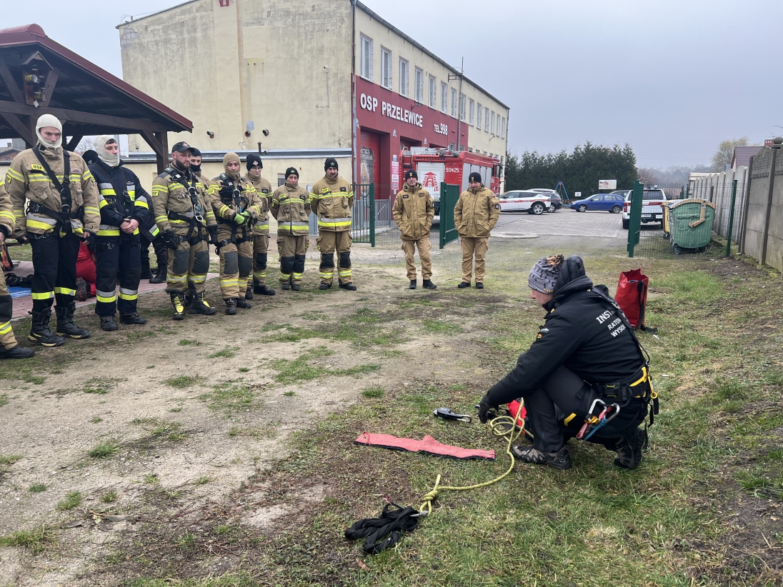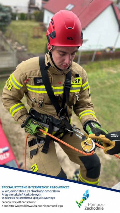 Szkolenia w Regionalnych Centrach Szkoleniowych OSP Przelewice i OSP Grzmiąca przeprowadził instruktor ratownictwa wysokościowego KSRG - kpt. Marek Sitarski z KW PSP w Szczecinie wraz ze strażakami ze Specjalistycznej Grupy Ratownictwa Wysokościowego WIATRAK z KP PSP w Kołobrzegu.