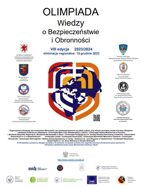 W dniu 15 grudnia 2023r., na Wydziale Nauk Społecznych Uniwersytetu Szczecińskiego przeprowadzono VIII edycję Olimpiady Wiedzy o Bezpieczeństwie i Obronności, która miała charakter regionalny, a udział w niej wzięli uczniowie szkół średnich z województwa zachodniopomorskiego. W etapie okręgowym Olimpiady udział wzięło 21 uczestników. Do III - krajowego etapu zakwalifikowało się 10 uczestników: Mateusz Wiechecki, Maksymilian Żmuda, Mateusz Janiak, Gabiriela Bartosiewicz, Maja Rucińska, Dominik Klim, Wera Staszak, Nikodem Wypart, Kacper Stasica, Bianka Tyliszewska.
