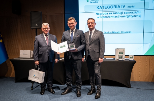 Gmina Miasto Koszalin przeszła w ostatnich latach transformację energetyczną. Zaangażowane w to były wszystkie jednostki miejskie. W 2016 r. Miejskie Przedsiębiorstwo Gospodarki Komunalnej sp. z o.o. zbudowało na swoich budynkach administracyjnych i technicznych instalacje fotowoltaiczne o mocy zainstalowanej 39,9 kWp oraz na terenach RZOO w Sianowie o mocy zainstalowanej 34 kWp. W 2022 r. gmina zainwestowała także zakup pojazdów z napędem elektrycznym do selektywnego wywozu odpadów. Zarząd Budynków Mieszkalnych w Koszalinie wykonał szereg robót termomodernizacyjnych oraz podłączył budynki przy ul. Piłsudskiego 26 i 28 oficyna A, B do miejskiej sieci cieplnej – likwidując tzw. „kopciuchy", co w znacznej mierze przyczyniło się do ograniczenia szkodliwej emisji pyłów i gazów. Zadanie zrealizowane zostało przy udziale dofinansowania z funduszy europejskich oraz z budżetu państwa. Łączna kwota inwestycji to około 2 mln zł. Koszalińskie TBS Sp. z o.o. zainstalowało na nowym budynku instalację fotowoltaiczną, z której energia wykorzystywana jest do celów wstępnego podgrzania ciepłej wody użytkowej. Zarząd Dróg i Transportu w Koszalinie przeprowadził szereg inwestycji EKO w latach 2014 - 2024 polegających na wymianie oświetlenia na lampy fotowoltaiczne, solarno – hybrydowe oraz hybrydowe. Spółka miejska Zarząd Obiektów Sportowych Sp. z o.o. w PARKU WODNYM KOSZALIN zbudowała instalację fotowoltaiczną o mocy 399,6 kW oraz zamontowała trzy panele hybrydowe wytwarzające energię elektryczną i cieplną w kogeneracji o mocy termicznej 2,685 kW i mocy elektrycznej 0,9 kW. Koszty razem brutto 3.370.268,90 zł. Budowa instalacji wspófinansowana była ze środków Regionalnego Programu Operacyjnego Województwa Zachodniopomorskiego 2014-2020, Oś priorytetowa II Gospodarka niskoemisyjna, Działanie 2.10 Zwiększanie wykorzystania źródeł odnawialnych w wysokości 1.223.166,39 zł. Na obiektach sportowych zamontowano także oświetlenie w technologii LED, zmodernizowano dach oraz elewację budynków, co zmniejszyło zużycie ciepła o 20%.